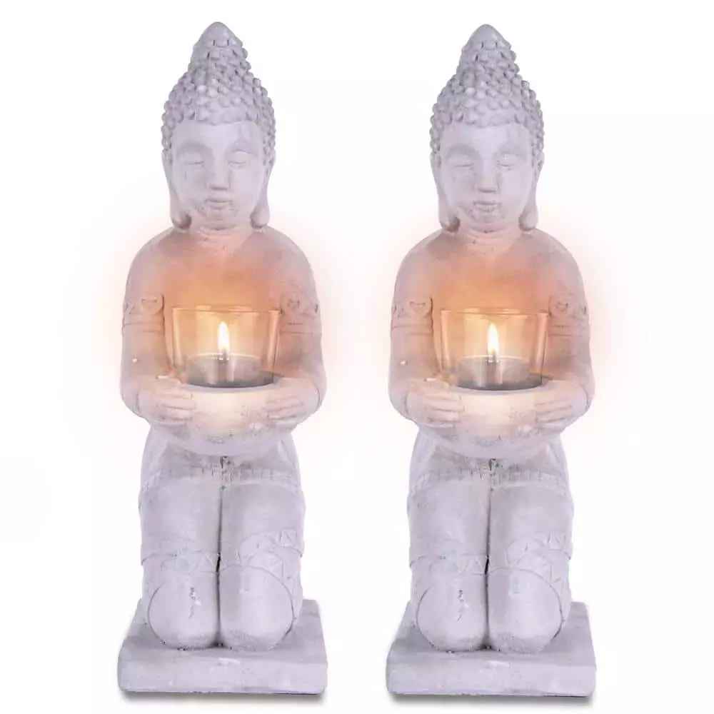Create your own oasis with the Buddha’s calming presence and design your own tranquil retreat where you will make wonderful memories. This indoor/outdoor Buddha Tealight Candle Holder Decoration Set is a peaceful, meditative addition to any home’s interior or garden decor. Handmade of lightweight cement composite through an ecofriendly manufacturing process, this composite material is an innovative blend of cement and fiberglass. With the help of using innovative material, KANTE provides clients with high strength, durable and stain resistant items. This material has strong UV resistant ability and stay well in wind, rain, hot and cold season. Illuminate your imagination, home or garden with KANTE’s Zen Buddha Candle Holders Collection.