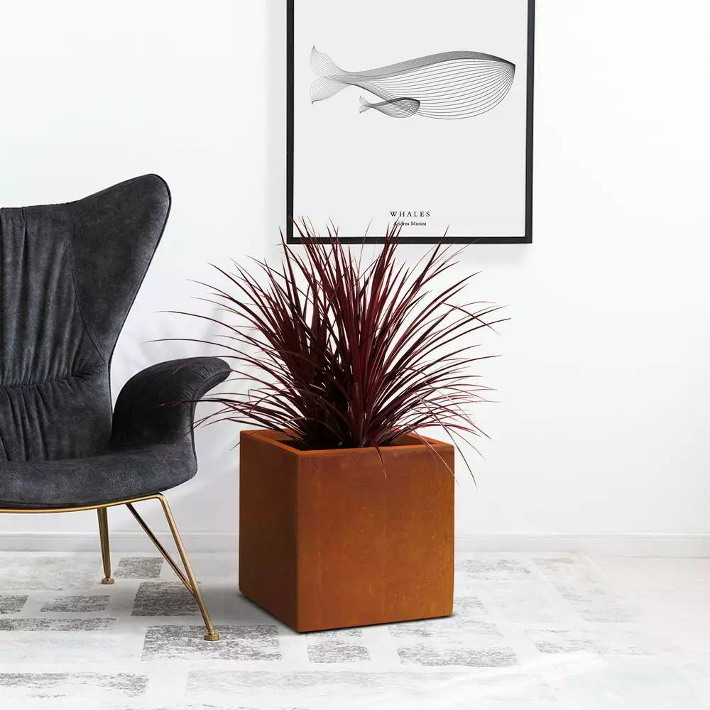KANTE 16in.H Square Faux Weathering Steel Finish Lightweight Concrete Durable Elegant Planter w/Drainage Hole, Home and Garden
