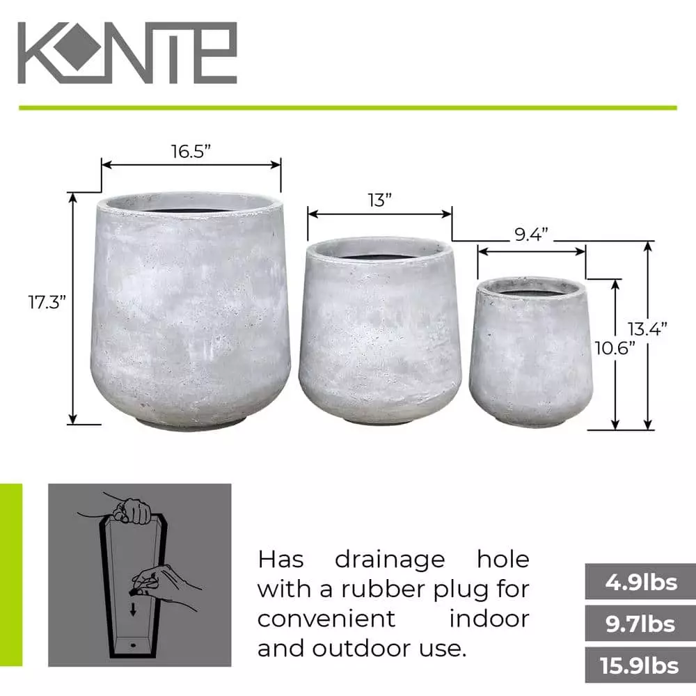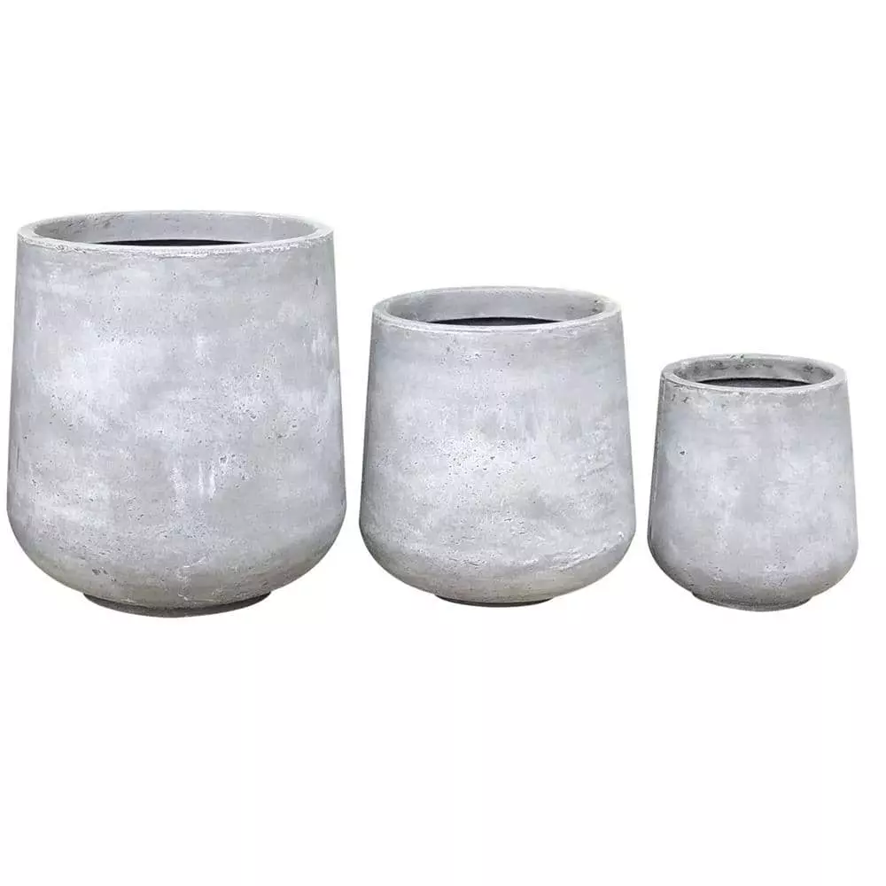 These Sleek contemporary seamless planters with soft curves will increase curb appeal and add an elegant touch to your decor. These planters have authentic concrete finish with visible pores make them beautiful contemporary pieces. The look and feel is true concrete but it weights substantially less than it looks. It also has very smooth finish instead of rough concrete potters you might be used to. The size is very generous and can hold a good amount of plants without looking crowded. Would look great on apartment balcony or large backyard patio. The smooth lines and round shape of these planters will help you maintain a modern design throughout your space. You cant go wrong with the grey finish as it blends well with any decor. They Can be used individually, as a set or in a row to promote unity. Made of lightweight concrete through an ecofriendly manufacturing process. This composite material has no rubber, plastic and steel. This material has all the advantages of concrete such as strength, durability, weather and damage resistance. Materials involve cement and weather-resistant fiberglass. This material has strong UV resistant ability and stay well in wind, rain, hot and cold season. By adding fiber clay material, planter is much easier to move around due to its lighter weight.