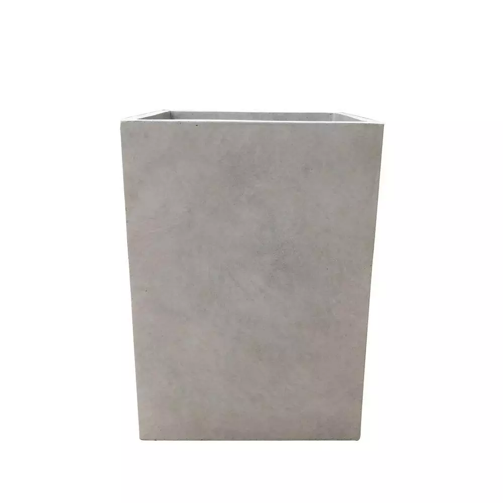 These elegant square planters have authentic concrete finish with visible pores make them beautiful contemporary pieces. The look and feel is true concrete but it weights substantially less than it looks. It also has very smooth finish instead of rough concrete potters you might be used to. The size is very generous and can hold a good amount of plants without looking crowded. It does have a more modern feel to it being straight lines and concrete. Would look great on apartment balcony or large backyard patio. Create a modern space using these tall wide planters. The straight lines and solid grey finish are a hot trend in modern landscape designs. Ideal for succulents and delicate plants that need room to grow. Made of Lightweight concrete through an ecofriendly manufacturing process. This composite material has no ruber, plastic, and steel. This material has all the advantages of concrete such as strength, durability, weather and damage resistance. Materials involve cement and weather resistant.