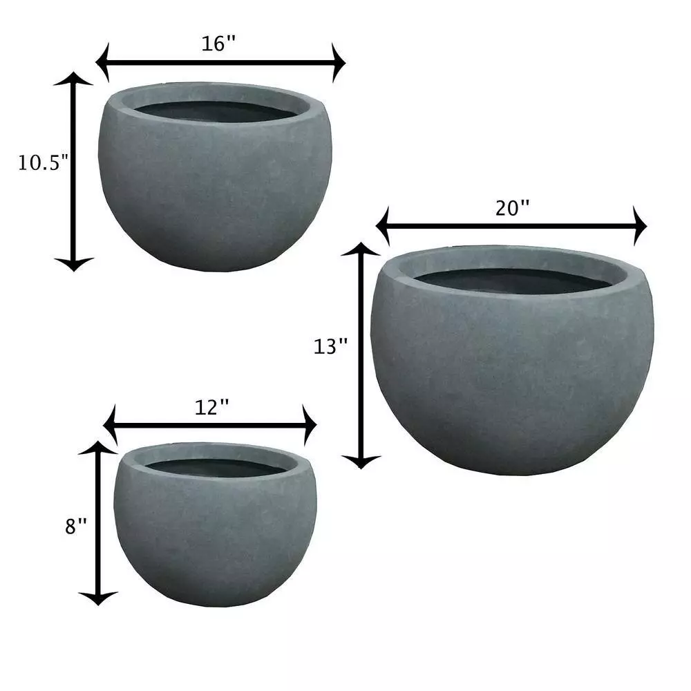 These elegant round planters have authentic concrete finish with visible pores make them beautiful contemporary pieces. The look and feel is true concrete but it weights substantially less than it looks, it also has very smooth finish instead of rough concrete potters you might be used to. The size is very generous and can hold a good amount of plants without looking crowded. Would look great on apartment balcony or large backyard patio. Low bowl planters with smooth lines and a solid charcoal finish that are ideal for endless succulent designs. Place on your patio or throughout your garden to add variety and color. Made of lightweight concrete through an ecofriendly manufacturing process. This composite material has no rubber, plastic and steel. This material has all the advantages of concrete such as strength, durability, weather and damage resistance. Materials involve cement and weather-resistant fiberglass. This material has strong UV resistant ability and stay well in wind, rain.
