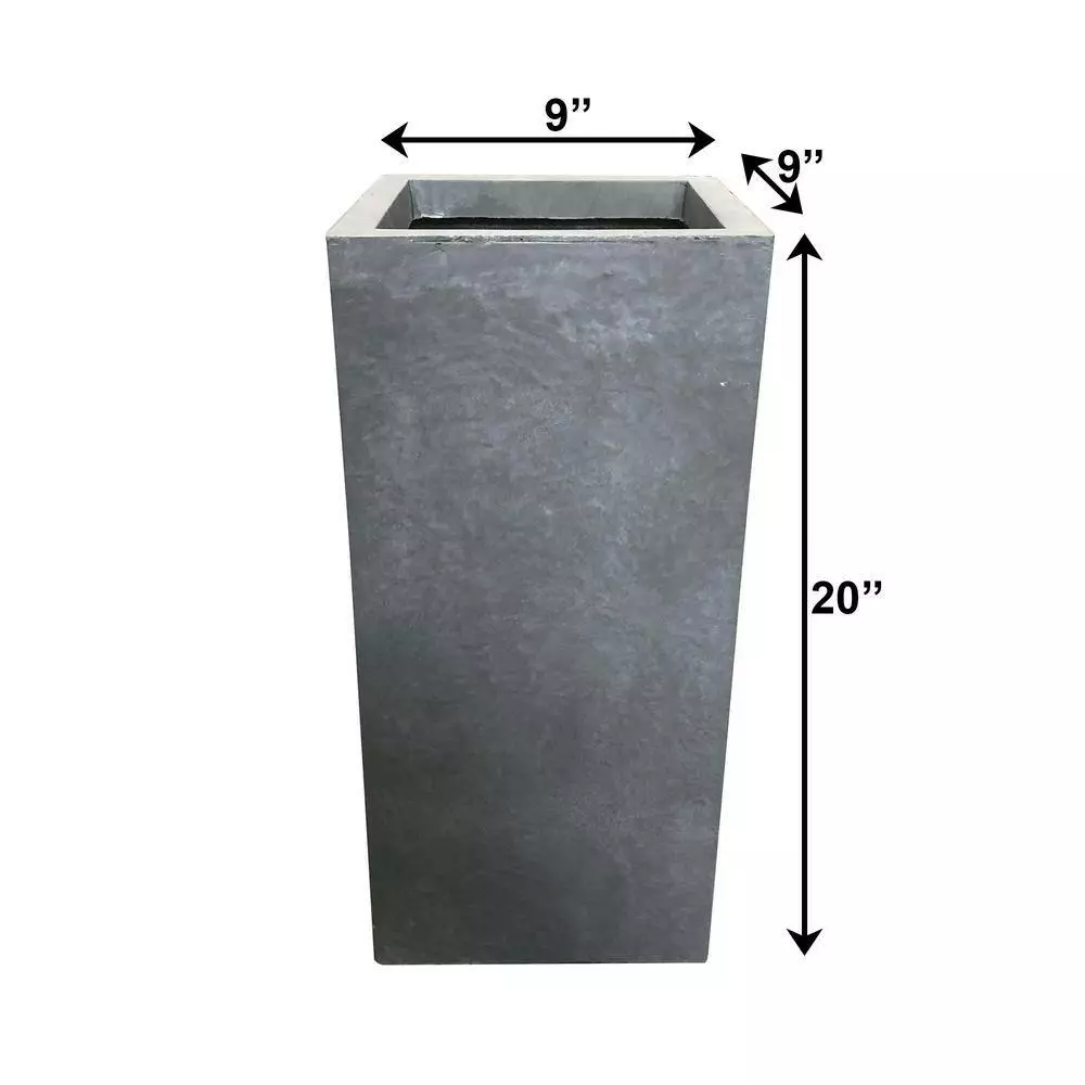 These elegant square planters have authentic concrete finish with visible pores make them beautiful contemporary pieces. The look and feel is true concrete but it weights substantially less than it looks. It also has very smooth finish instead of rough concrete potters you might be used to. The size is very generous and can hold a good amount of plants without looking crowded. It does have a more modern feel to it being straight lines and concrete. Would look great on apartment balcony or large backyard patio. These tall concrete planters are the best fit for modern designs. They feature clean angles and pure cement finish that will add refinement to your favorite space. Use them with tall plants for a dimensional effect. Made of lightweight concrete through an ecofriendly manufacturing process. This composite material has no ruber, plastic, and steel. This material has all the advantages of concrete such as strength, durability, weather and damage resistance. Materials involve cement.