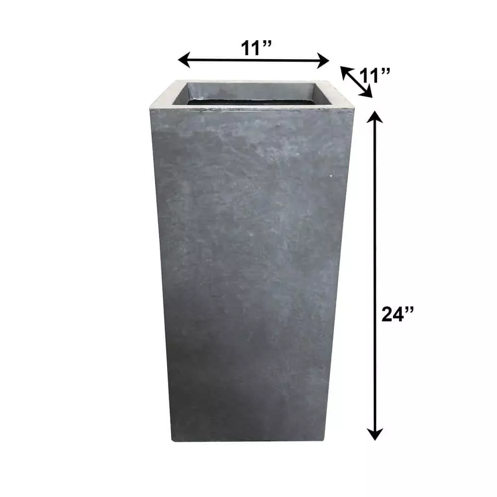 These elegant square planters have authentic concrete finish with visible pores make them beautiful contemporary pieces. The look and feel is true concrete but it weights substantially less than it looks. It also has very smooth finish instead of rough concrete potters you might be used to. The size is very generous and can hold a good amount of plants without looking crowded. It does have a more modern feel to it being straight lines and concrete. Would look great on apartment balcony or large backyard patio. These tall concrete planters are the best fit for modern designs. They feature clean angles and pure cement finish that will add refinement to your favorite space. Use them with tall plants for a dimensional effect. Made of lightweight concrete through an ecofriendly manufacturing process. This composite material has no ruber, plastic, and steel. This material has all the advantages of concrete such as strength, durability, weather and damage resistance. Materials involve cement.