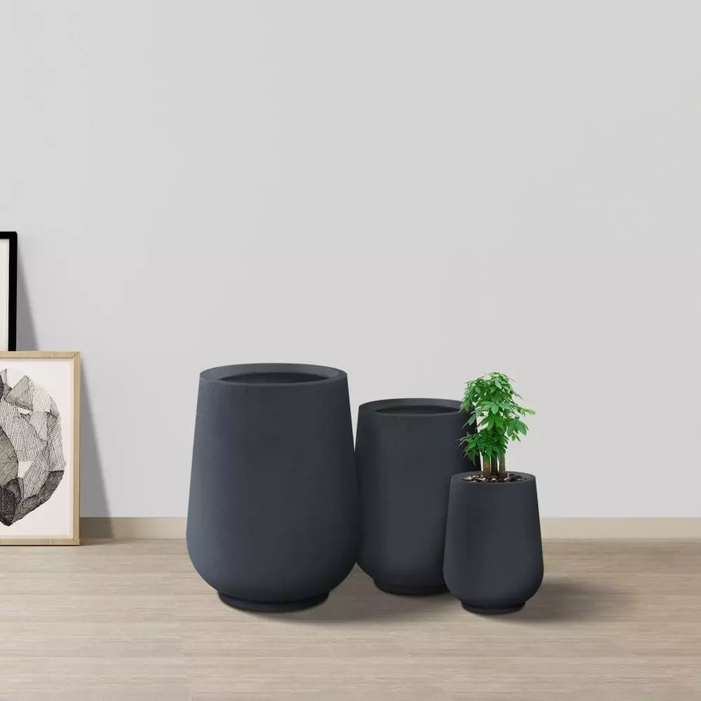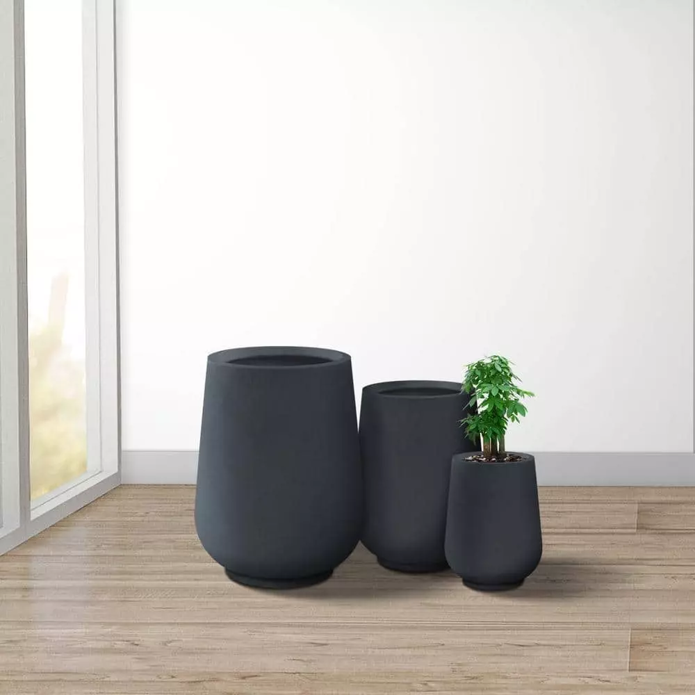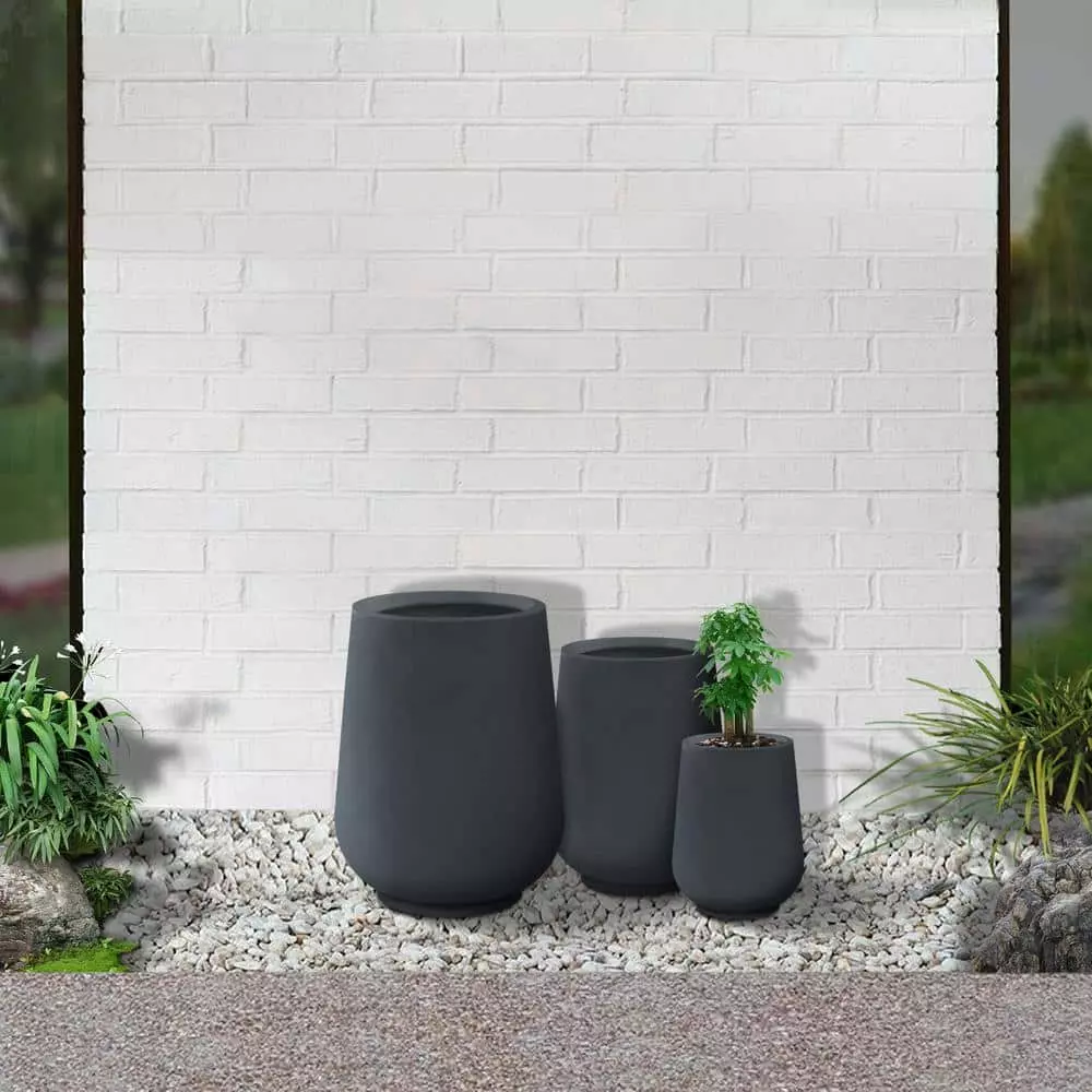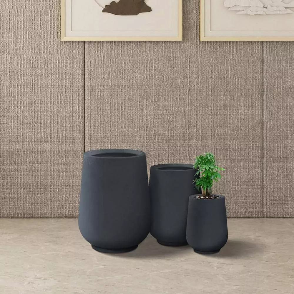 These Sleek contemporary seamless planters will increase curb appeal and add an elegant touch to your decor, with authentic concrete finish and visible pores that make them beautiful contemporary pieces. The look and feel is true concrete but it weighs substantially less than it looks, making it easier to move around. It is smooth instead of rough concrete potters you might be used to and will help you maintain a modern design throughout your space. The size is very generous and can hold a good amount of plants without looking crowded, and the color blends well with any decor. Would look great on apartment balcony or large backyard patio. They can be used individually, as a set or in a row to promote unity. Made of lightweight concrete and weather-resistant fiberglass through an ecofriendly manufacturing process. It has all the advantages of concrete such as strength, durability, weather and damage resistance, strong UV resistant ability and stay well in wind, rain, hot and cold season.