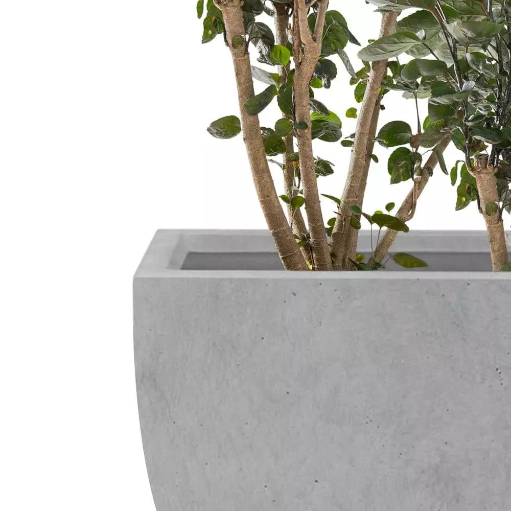 The flared square design coupled with delicate curves differentiate these planters from other common trends. The visible pores showcase the uniqueness of concrete. These elegant square planters have authentic concrete finish with visible pores make them beautiful contemporary pieces. The look and feel is true concrete but it weighs substantially less than it looks. It also has very smooth finish instead of rough concrete potters you might be used to. The size is very generous and can hold a good amount of plants without looking crowded. It does have a more modern feel to it being straight lines and concrete. Would look great on apartment balcony or large backyard patio. Made of lightweight concrete through an ecofriendly manufacturing process. This material has all the advantages of concrete such as strength, durability, weather and damage resistance. Materials involve cement and weather-resistant fiberglass.