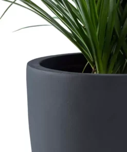 KANTE 8 in. H Charcoal Concrete and Fiberglass Round Bowl Planter, Outdoor Indoor Large Planters Pots with Drainage