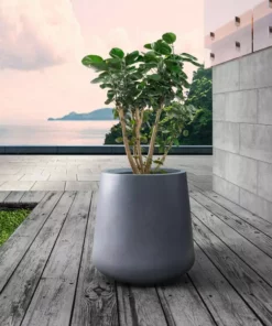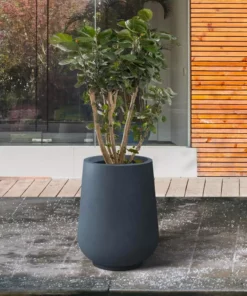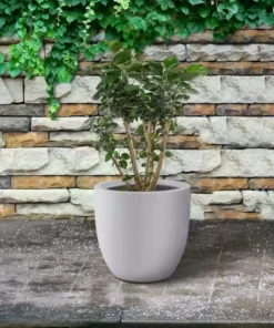 KANTE 9.8 in. W Round Charcoal Lightweight Concrete/Fiberglass Indoor Outdoor Elegant Planter