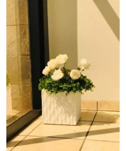 KANTE 16 in. W Square Pure White Concrete/Fiberglass Indoor Outdoor Elegant Retro Planter