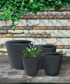 KANTE 17.3 in. Tall Natural Lightweight Concrete Footed Tulip Outdoor Round Planter (Set of 3)