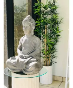 KANTE 25.6 in. H Natural Concrete/Fiberglass Indoor Outdoor Sitting Meditating Zen Buddha Statue