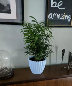 Vigoro 6 in. Neanthebella Palm Indoor Plant in Small White Ribbed Plastic Decor Planter (2-Pack)
