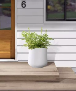 KANTE 12.9 in. W Round Pure White Concrete/Fiberglass Indoor Outdoor Modern Seamless Planter