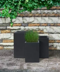 KANTE 20 in. H Square Charcoal Lightweight Concrete/Fiberglass Indoor Outdoor Elegant Tall Planter