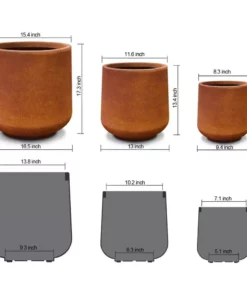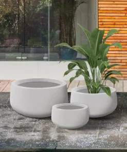 KANTE 17.3 in. Tall Natural Lightweight Concrete Footed Tulip Outdoor Round Planter (Set of 3)