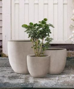 KANTE 20 in. W Round Slate Gray Lightweight Concrete/Fiberglass Indoor Outdoor Elegant Bowl Planter