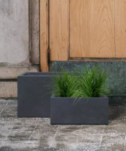 KANTE 31 in. and 23 in. Long Timber Ridge Lightweight Concrete Modern Rectangle Outdoor Planter Set