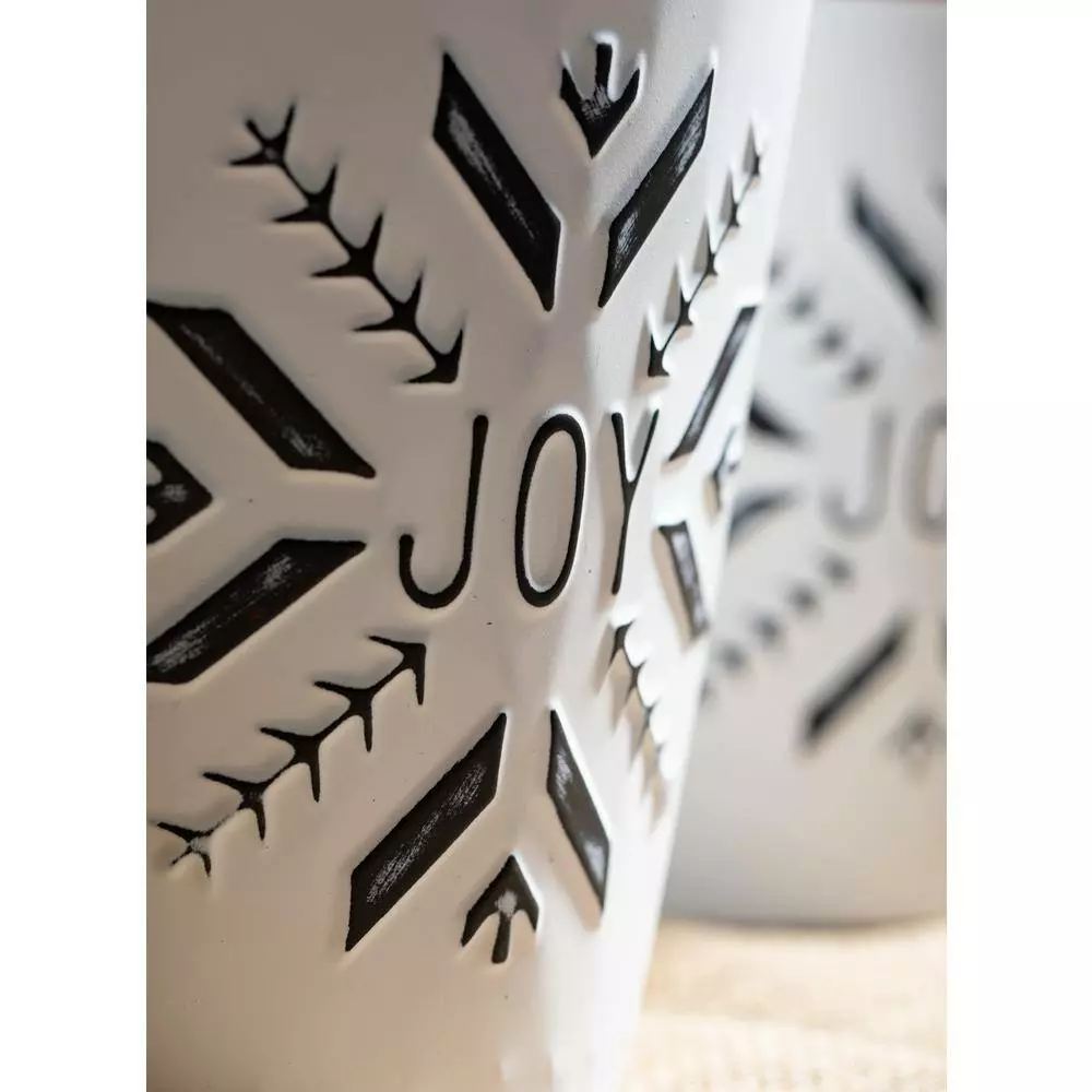 This playful pair of buckets are great for storage and organization this holiday. A white painted metal container features a bright red trim with intricate snowflake imprinted designs. They measure 9 in. around x 9.5 in. tall and 8 in. around x 8.5 in. tall. Over the last 52 years, Sullivans has become an industry leader in home decorations. Our brand is rooted in tradition while incorporating modernized trends to keep your home looking up to date with timeless style. Here at Sullivans, we pride ourselves on creating product designs focused on quality and value, ensuring that our customers have access to beautiful products at reasonable price points.