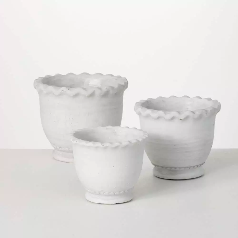 Add a regal sense of style to your space with this charming set of scalloped-edged pots. This trio will look classic in any setting. Over the last 52-years, Sullivans has become an industry leader in home decorations. Our brand is rooted in tradition while incorporating modernized trends to keep your home looking up to date with timeless style. Here at Sullivans, we pride ourselves on creating product designs focused on quality and value, ensuring that our customers have access to beautiful products at reasonable price points.