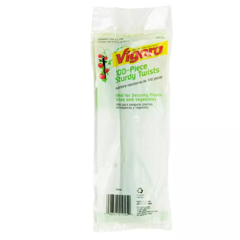 The Vigoro Plastic Plant Twist Ties are used to attach plants to supports, train them to grow straight and help keep your garden organized. These garden twist ties are composed of a small metal wire that is encased in green plastic – much like what is used for bread and garbage bags. The Vigoro Plastic Plant Twist Ties are pre-cut to 8 in. length so that you can quickly tie off your plant. The plastic twist ties can be used around the garden and house in a variety of ways. They are flexible, adjustable, weather-resistant and strong enough to last all season.
