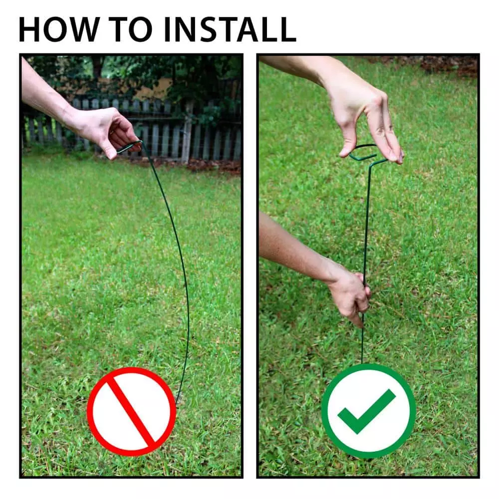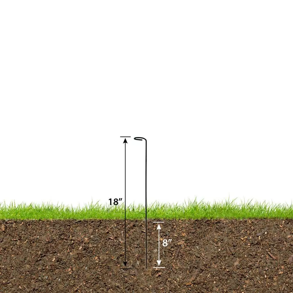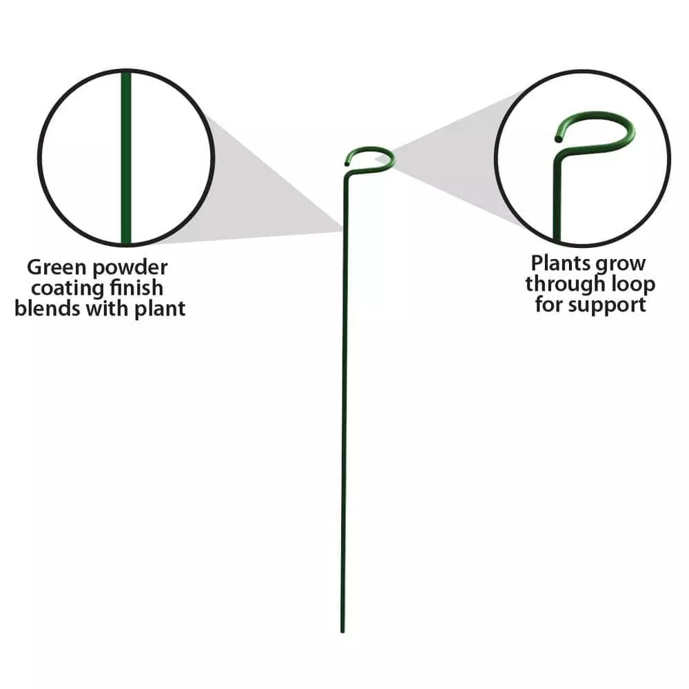 18in Plant Prop is designed to help stabilize plants and provide protection from wind and rain damage. The plant prop features a powder coating to help prevent rusting and corrosion and for longer lasting life so it can be used year after year. The green color finish blends in with its surroundings making it a discrete option. Quick and easy to install, simpy push the plant prop into the ground, firmly holding the bottom portion of the stake and feed the plant stem into the opening at the top. Not for recommended use with top-heavy plants. For increased stability, drive stake further into the ground by firmly holding the plant stake at the bottom with one hand and gently pushing on the top with the other hand (see photos for example). Available in 18in., 24in, and 36in heights.