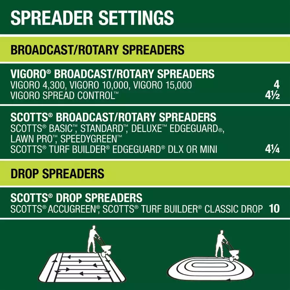 Vigoro Lawn Fertilizer with ASSURANCE Particle Technology feeds your lawn in 1 easy step. This technology distributes more particles per square foot, when compared to the previous Vigoro formula, to deliver even feeding and even greening with no burning guaranteed. This fertilizer greens in just 72-hours and features a time released nitrogen formula to keep your lawn looking great. It also promotes a deep and dense root zone that is better able to reach water and find nutrients to strengthen against heat and drought. For optimal results, feed your lawn when grass is actively growing.