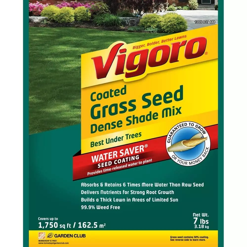 Bring new life to your lawn with the Vigoro Dense Shade Grass Seed Mix. The coated seeds retain 6X more water than uncoated seeds, gradually releasing water back to the plant during the establishment phase. This coating also adds nutrients and fungicide to promote quick root growth and protect the seedlings from disease. Designed for predominantly shady areas, it’s perfect for seeding around or under dense trees. This dense shade grass seed mix is guaranteed to grow lush, dense grass for a great looking lawn.